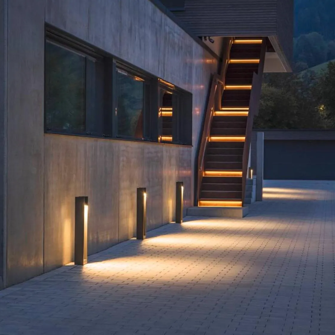 Spesielt behagelig lys til uteområdet får du med de integrerte premium LED-ene til Pullert QUAD POLE. Selvsagt kan armaturhodet svinges.