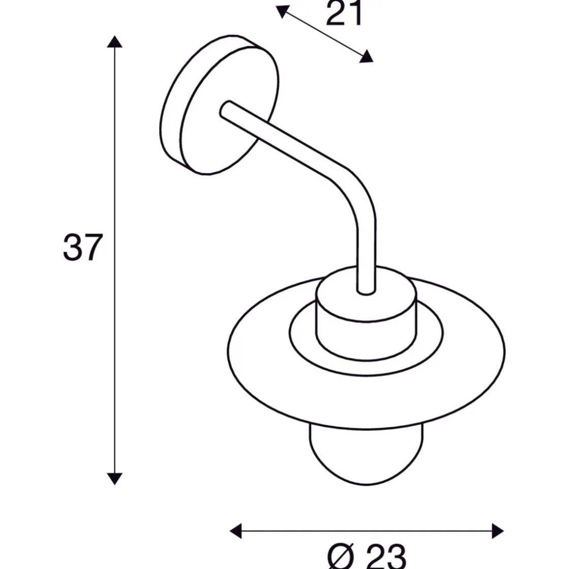 MOLAT veggarmatur er utstyrt med en E27-fatning og består av lakkert aluminium og et glass som dekker den integrerte fatningen. armaturhodet er montert på en Fast, buet arm og peker nedover. Med kapslingsklasse IP44 er den egnet til utendørs bruk. armaturet kommer i antrasitt. Den kobles til 230 V nettspenning.