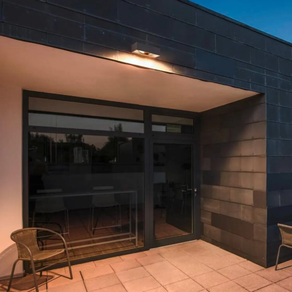 Gjennomgående vellykket armaturdesign innsatt i firkantet aluminiumsramme: ESKINA FRAME WL double ser stilig ut i ethvert utendørsområde. Du kan via CCT-bryter (3000/4000 K) regulere den 2200 / 2400 lumen sterke og doble veggmonterte armaturn. Med strålingsvinkelen på 95 grader oppstår det et bredt fordelt lys. Med beskyttelsesgraden IP 65 er den best mulig beskyttet mot inntrenging av fuktighet. Og installasjonen av den designpremierte armaturn utføres både raskt og enkelt.