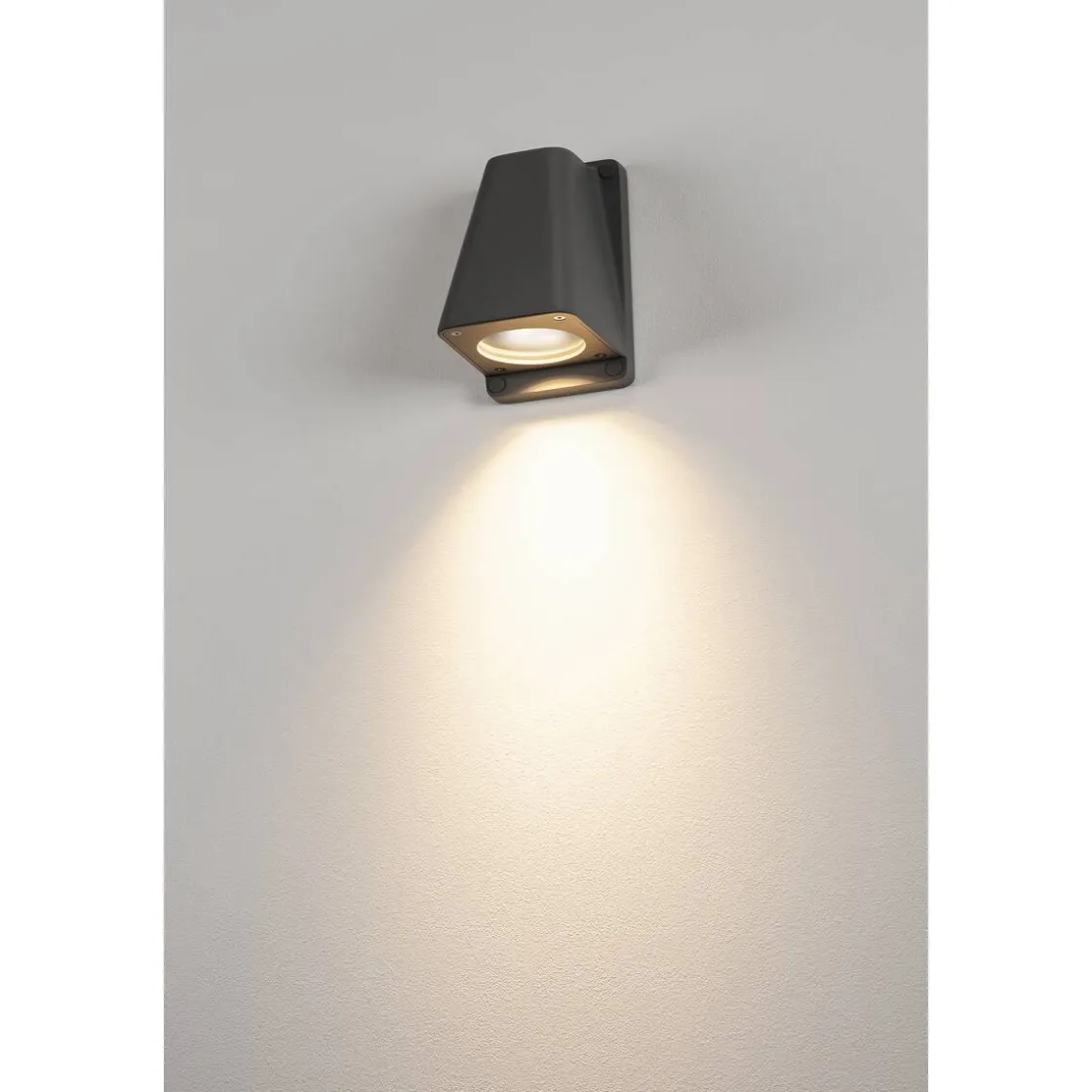 veggarmaturet WALLYX er svært forseggjort, og den spesielle fasongen gjør at den kan brukes med GU10 LED-lyskilde. Dermed kan armaturet, brukes til alle belysningsoppgaver. armaturet kobles direkte til 230 V nettspenning. Med kapslingsklasse IP44 er den egnet til utendørs bruk.