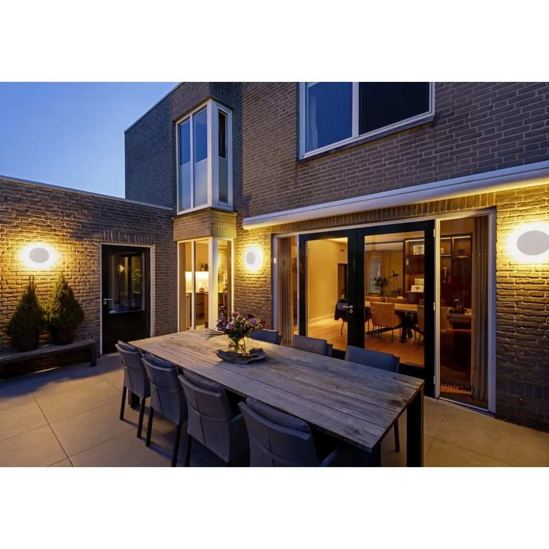 Elegant griper den nye D-RING-serien trenden til organiske former. Det dimbare varmhvite lyset som kan stilles inn indirekte og via CCT-bryteren (2700 K / 3000 K) setter fasadene diskré og blendingsfritt i scene. De to ulike diameterne tilbyr utformingsrom. Takket være den spesielle overflatebehandlingen er dessuten bruken i nærheten av kysten mulig.