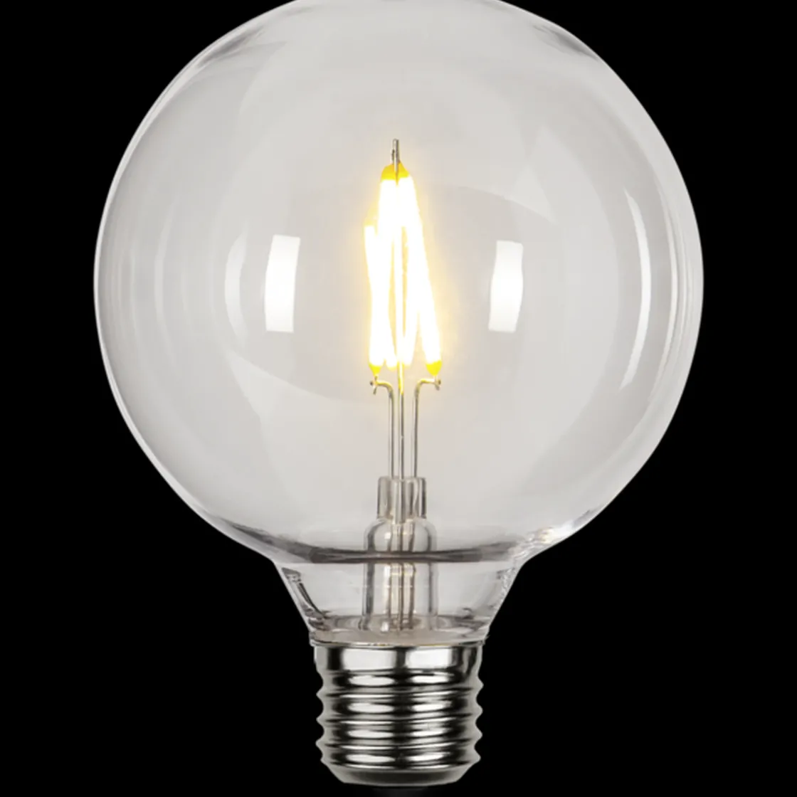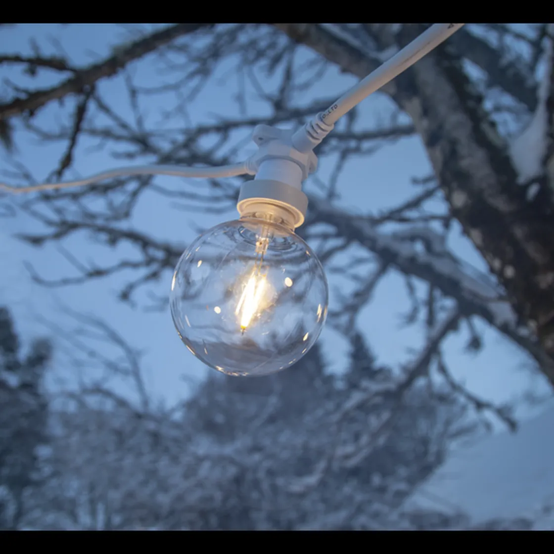 LED lyspære av plast som tåler å henge utendørs. Passer utmerket til lysslynger.