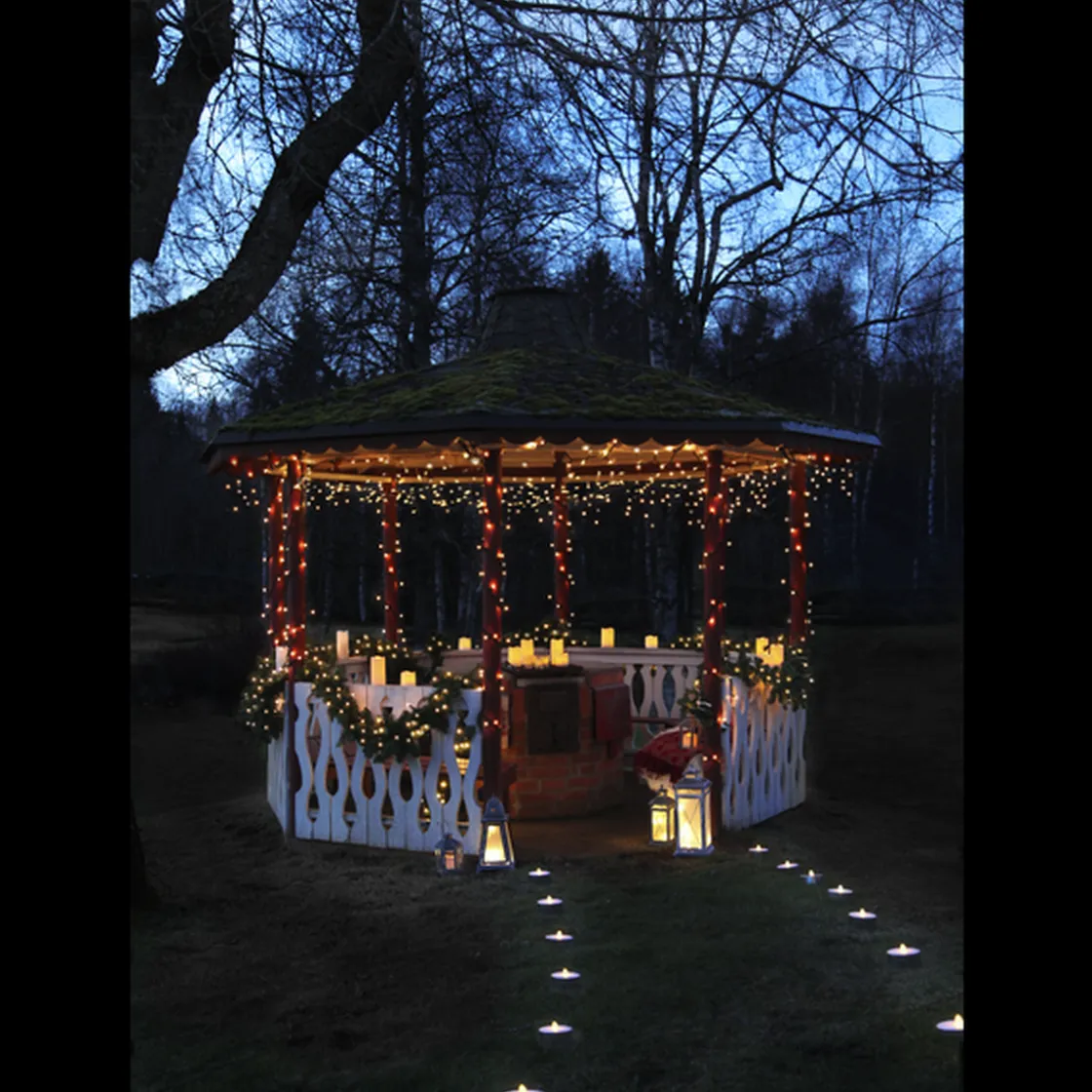 System 24 er et komplett hagesystem, fest og julebelysningssløyfesystem. Ekstra istapp med 49 varmhvite LED-lyskilder. Lysløkken er 3 meter lang og 40 cm høy.