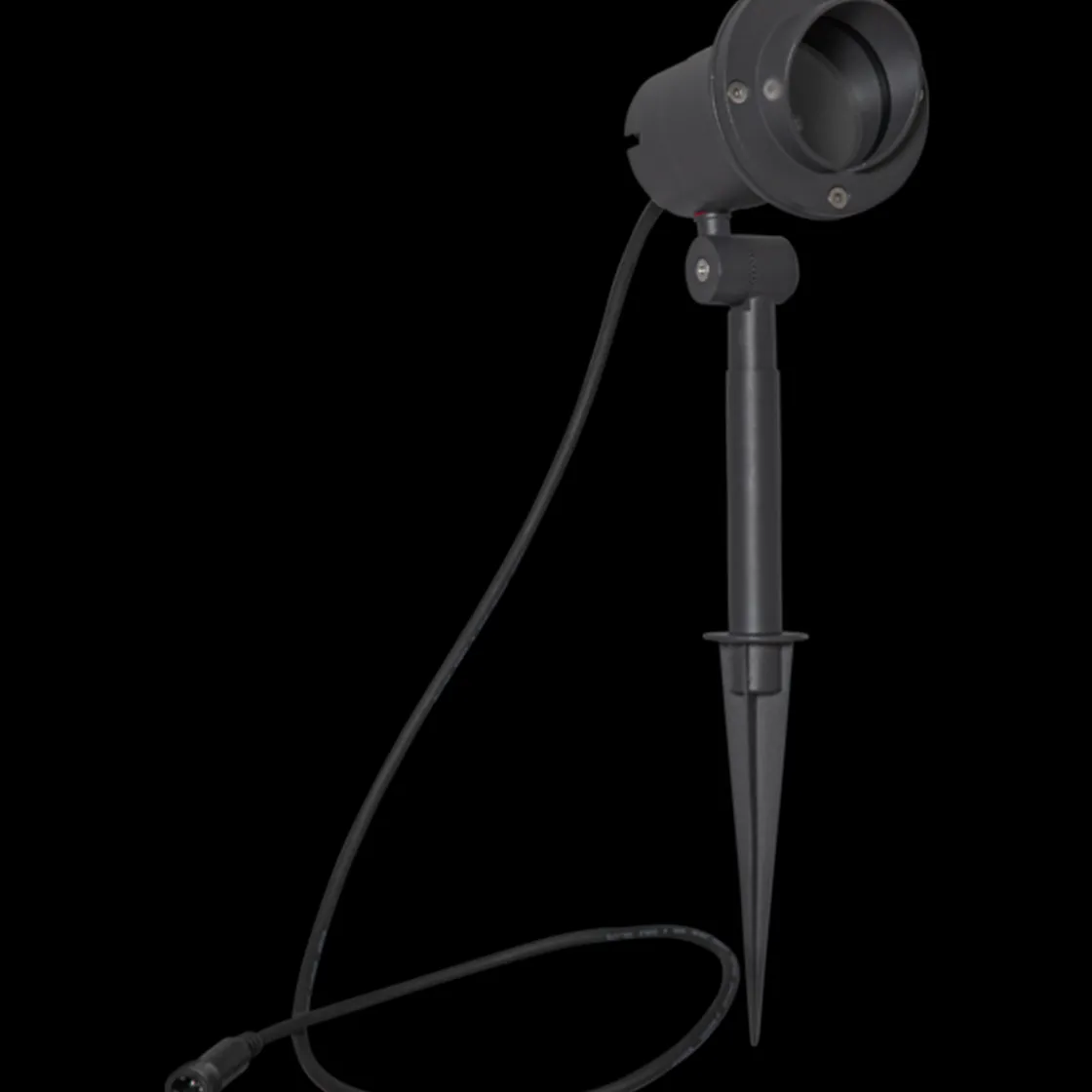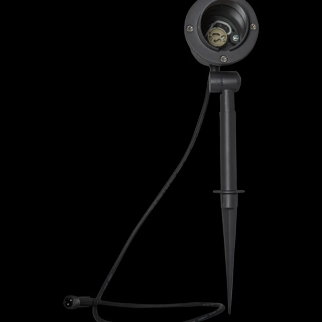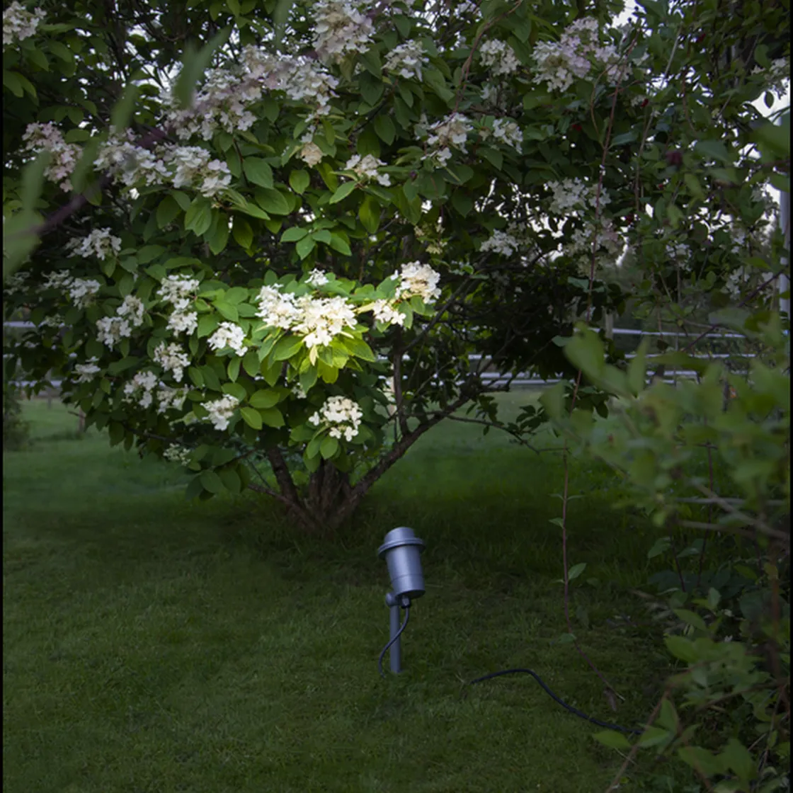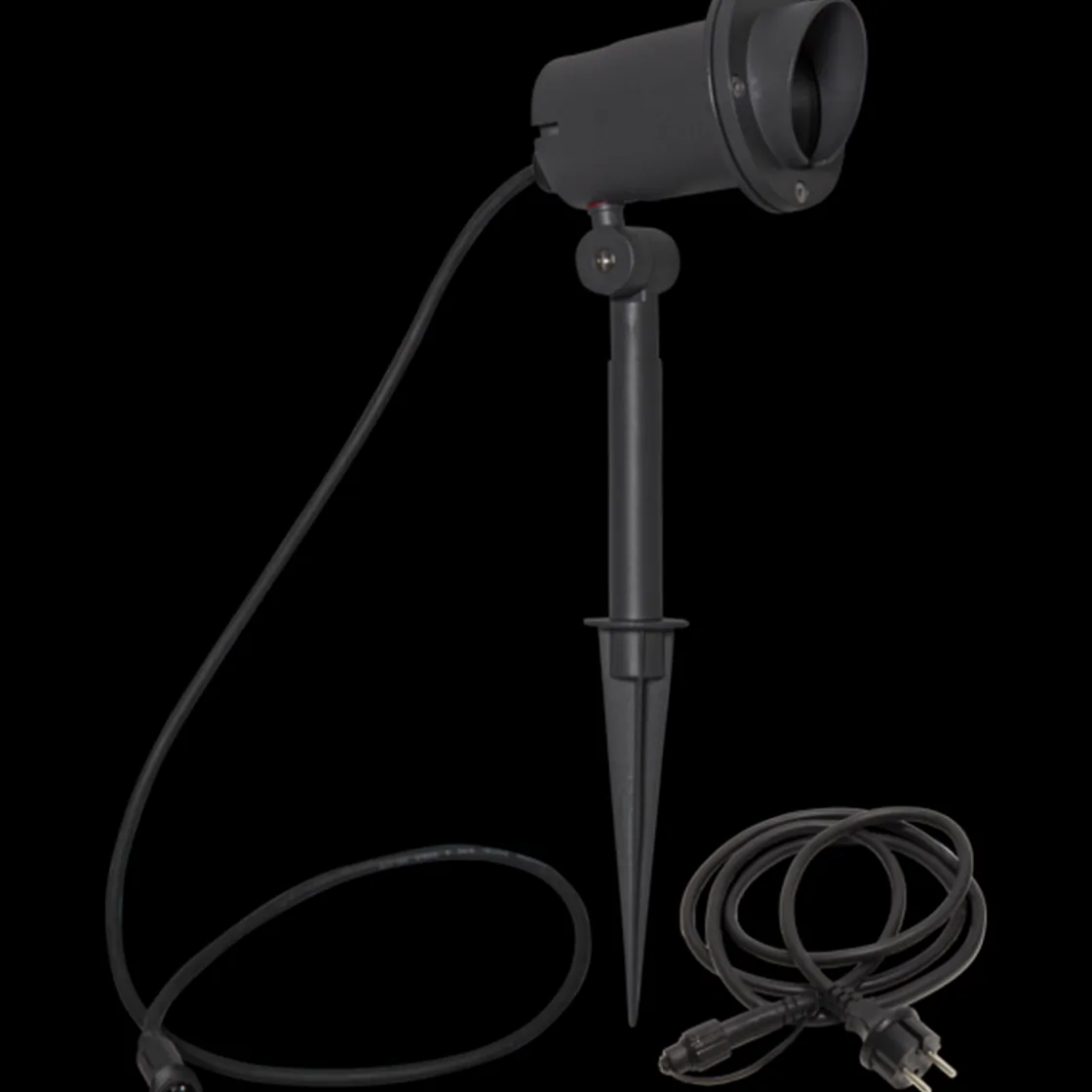 Hagebelysning med GU10 lamper. Mørkegrå aluminiumsspot for utendørs bruk, ca 30 cm høy. Lys opp hagen din med denne elegante spotlampen. Startkabel er inkludert. Varier lyset med forskjellige lyskilder, ikke inkludert.