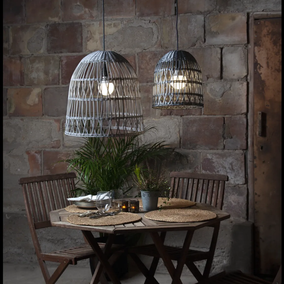 Nydelig lampeskjerm i kunstrotting som er egnet for utendørsbruk. Lampeskjermen er 33 cm høy og 30 cm i diameter.