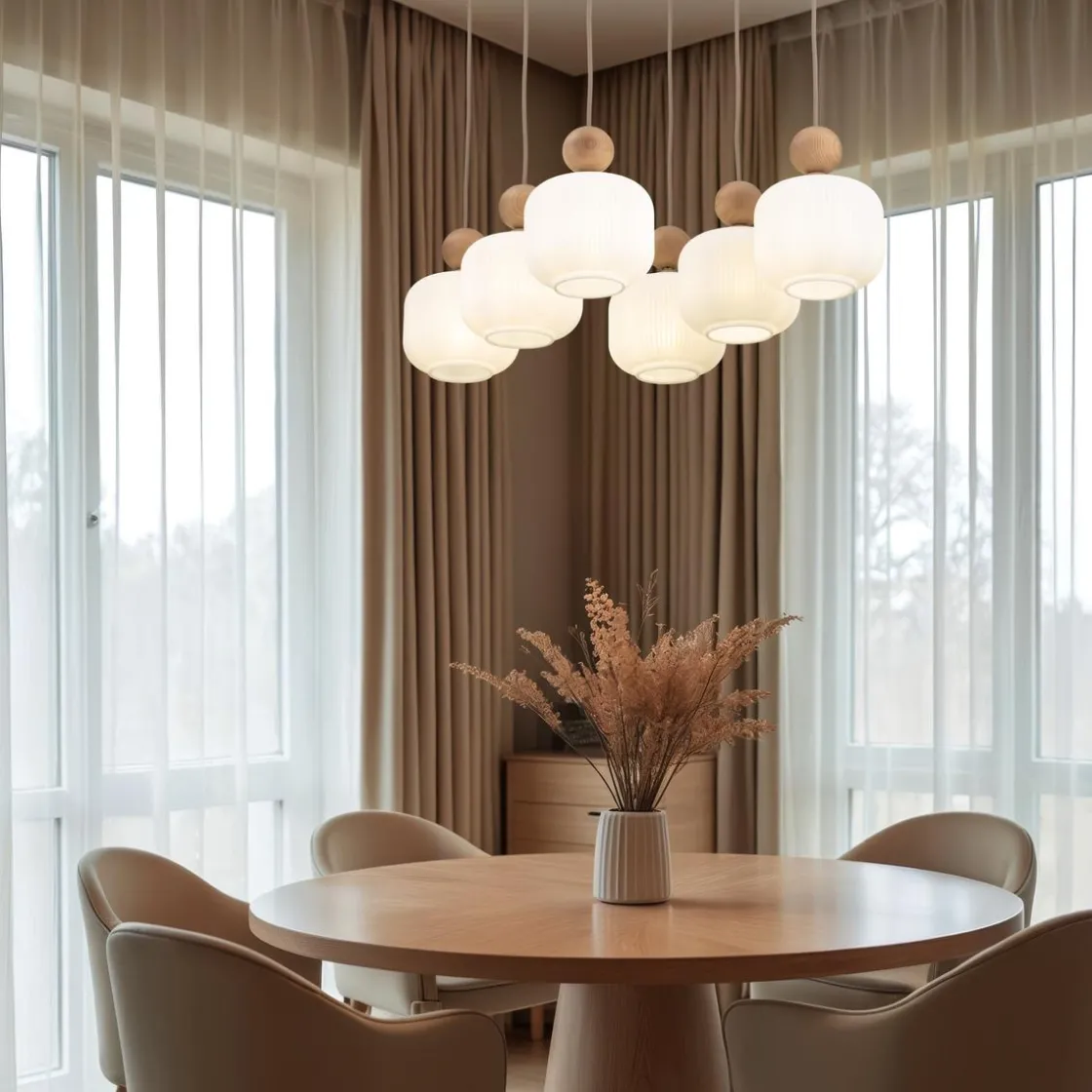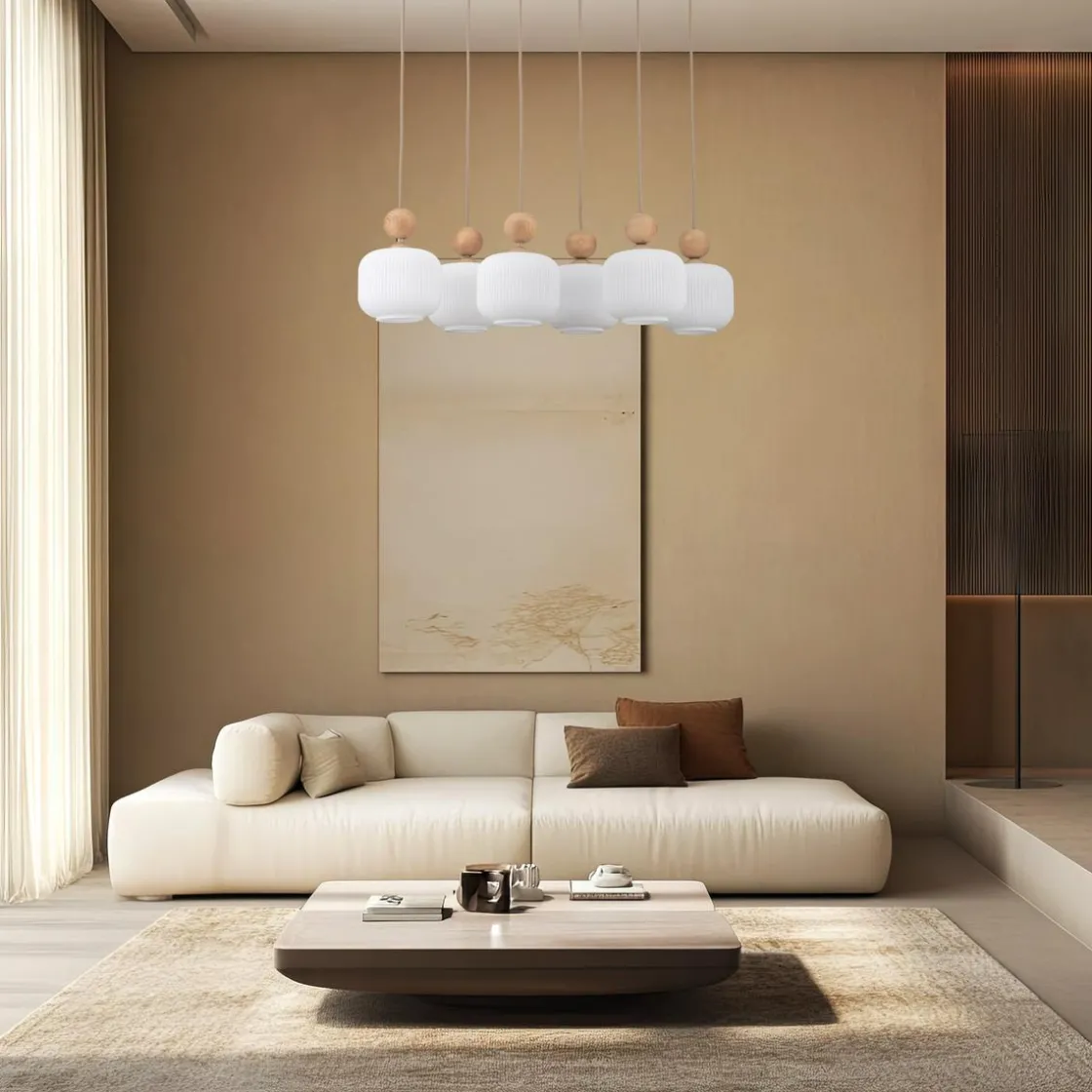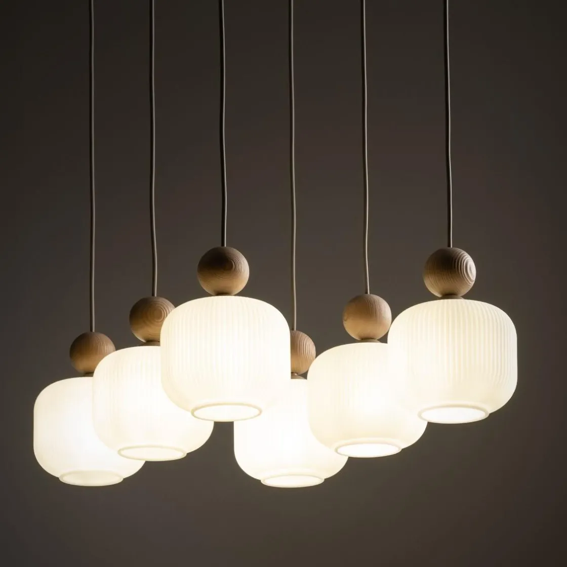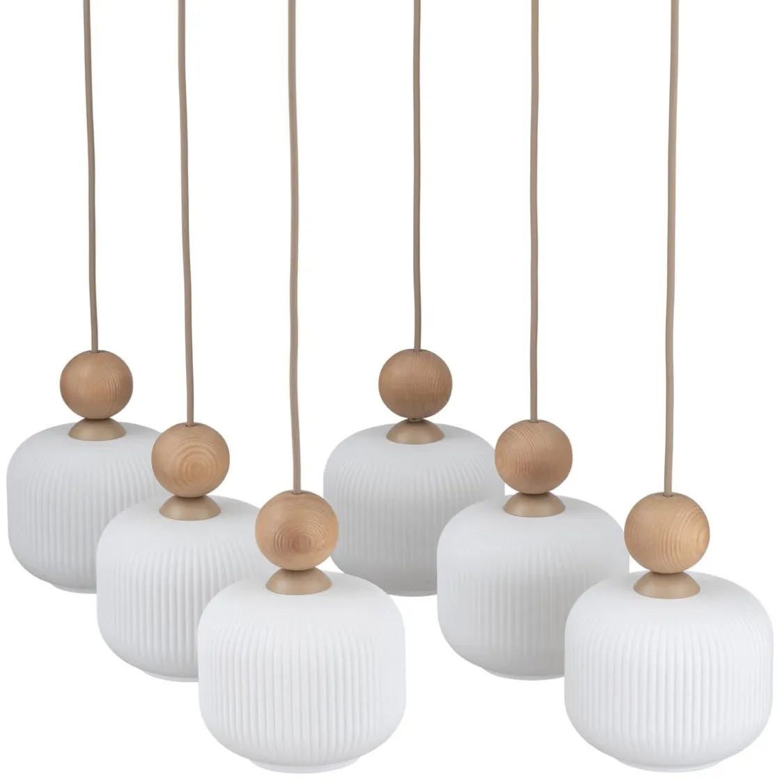BALLO- lampefamilien er en elegant belysningskolleksjon som kombinerer moderne stil med naturlige aksenter. Et særegent trekk ved serien er de riflede, melkehvite glassskjermene, som subtilt diffunderer lyset og skaper en koselig atmosfære i ethvert interiør. Dekorative trekuler plassert over skjermene gir også et varmt og organisk preg. Det hele kompletteres av en Beige-farget baldakin – en lys, sandbeige som perfekt utfyller lampenes delikate form. BALLO- kolleksjonen er tilgjengelig i flere versjoner, noe som gjør den enkel å tilpasse til ulike rom og designbehov.