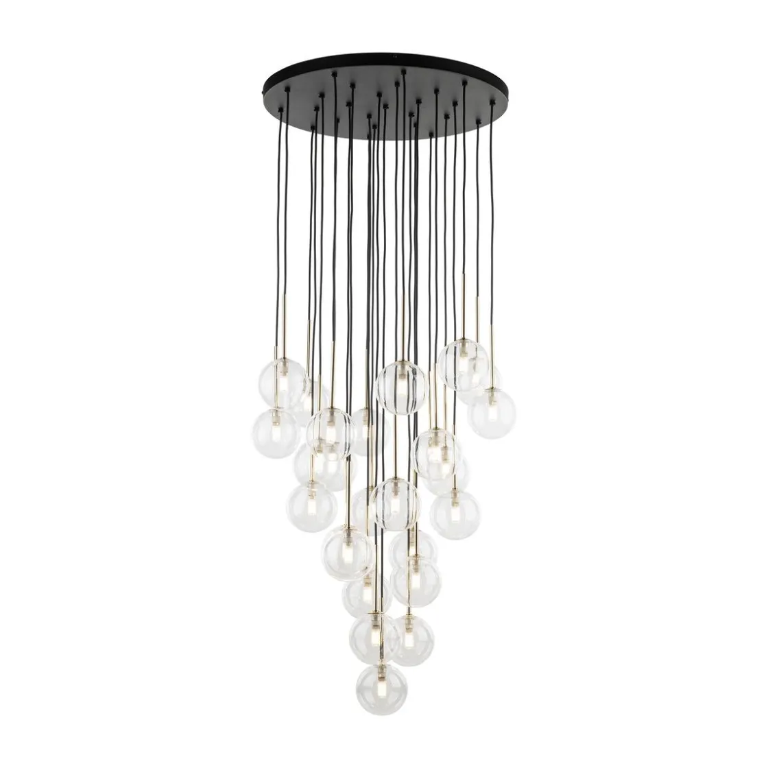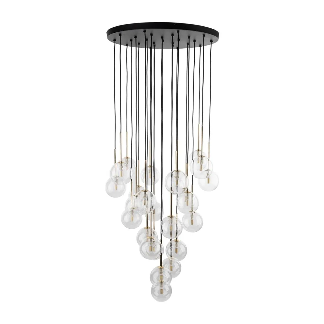 NILOS-lamper er en familie av designer-pendellamper med et moderne og elegant utseende. De er preget av gjennomsiktige glasskjermer som gir utmerket lysspredning. Hver lampe har også en gullhylse ved skjermen, som gir en luksuriøs aksent. Høyden på lampene kan justeres etter dine preferanser, da pendlene med lampeskjermer skaper kaskader av forskjellige lengder. Høydejustering gir oss muligheten til å skape et unikt og individuelt utseende av interiøret vårt.