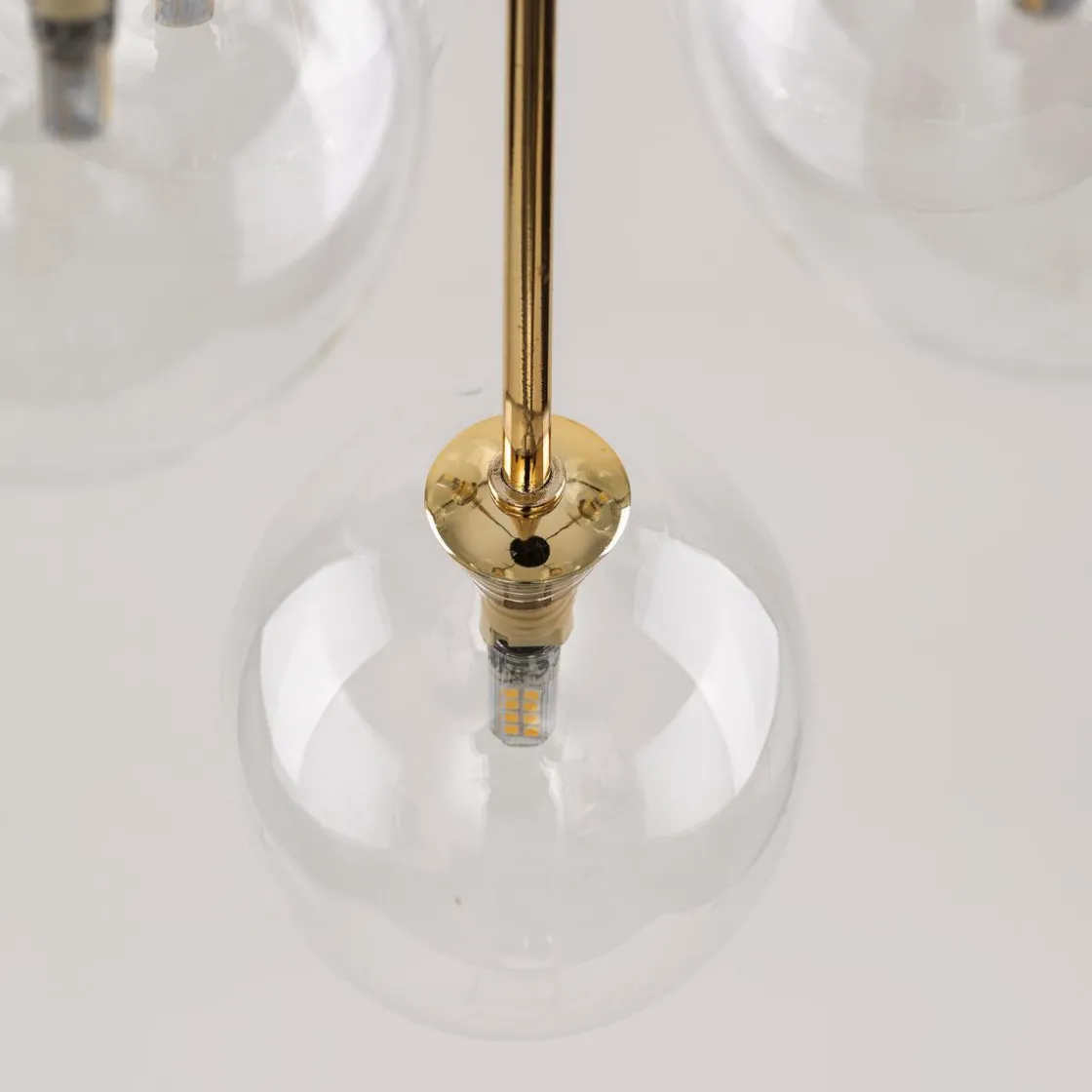 NILOS-lamper er en familie av designer-pendellamper med et moderne og elegant utseende. De er preget av gjennomsiktige glasskjermer som gir utmerket lysspredning. Hver lampe har også en gullhylse ved skjermen, som gir en luksuriøs aksent. Høyden på lampene kan justeres etter dine preferanser, da pendlene med lampeskjermer skaper kaskader av forskjellige lengder. Høydejustering gir oss muligheten til å skape et unikt og individuelt utseende av interiøret vårt.