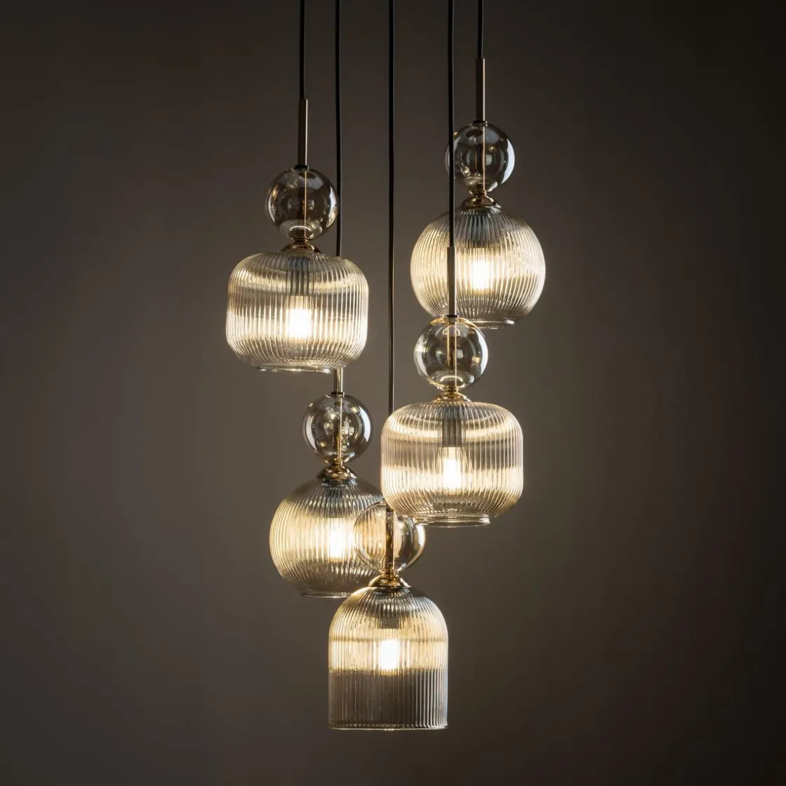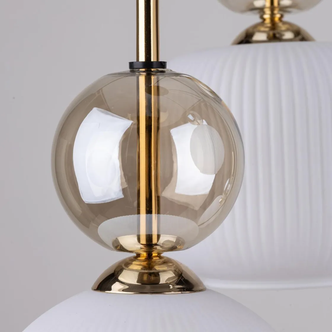 Sophia lampefamilien kombinerer klassisk form med en moderne karakter. Særegne skjermer med delikate, vertikale riller i en varm fargetone diffunderer lyset diskret og skaper en koselig atmosfære i rommet. Stilige gulldetaljer og elementer i røykfargede glasstoner gir eleganse og raffinement til det overordnede designet. Kolleksjonen inkluderer ulike varianter – fra enkle pendler, via taklamper med til vegglamper – som lar deg harmonisk belyse både små og romslige interiører. Sophia er perfekt for stuer, spisestuer, soverom og til og med kommersielle rom, og gir dem en unik karakter.