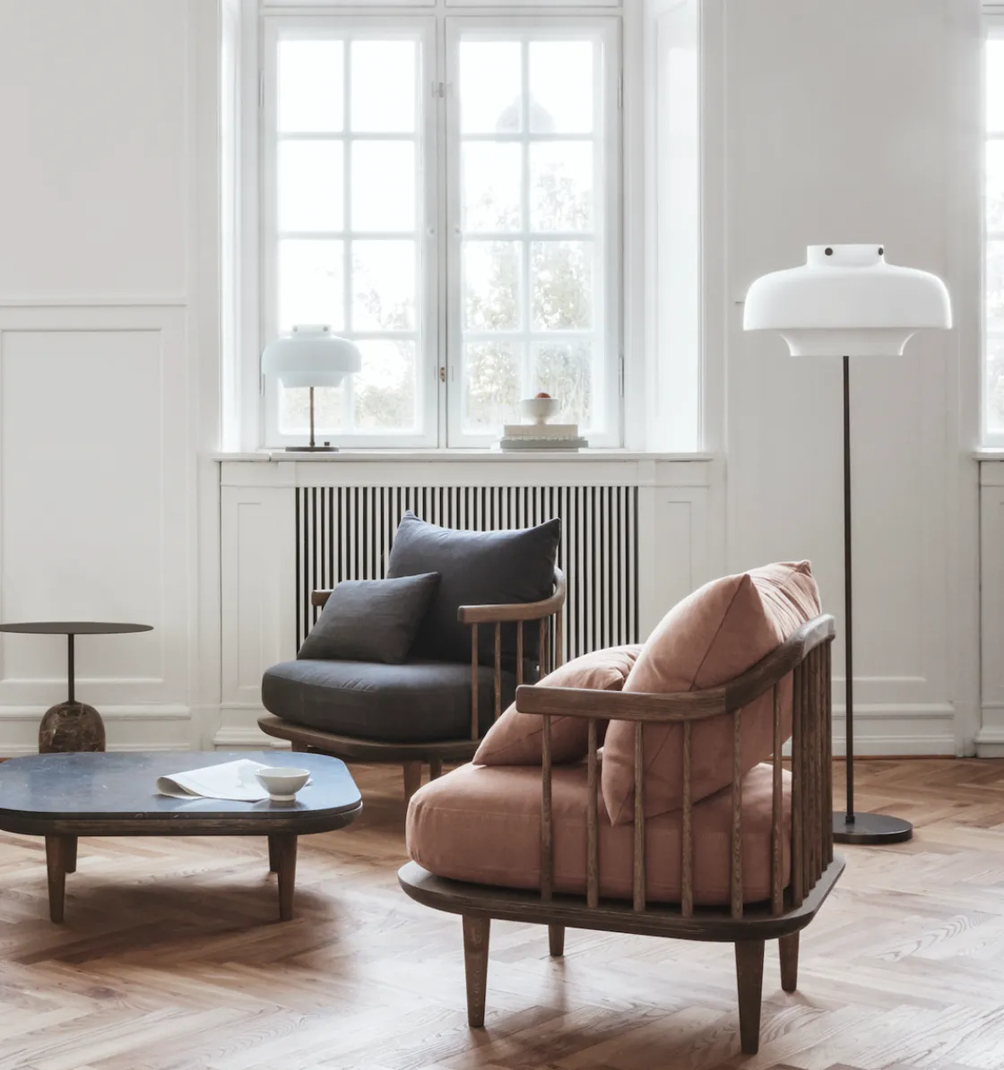 Copenhagen gulvlampe er en vakker gulvlampe som er lett å plassere i et rom, med sin opale glasskjerm vil den gi godt med lys uten å blende. Ideen bak lampen var å bruke konstraster i utformingen, maritim og industriell, klassisk men moderne stil. Lampen skulle være i en lett industriell stil, men med et snev av eleganse. Noe de har klart bra.