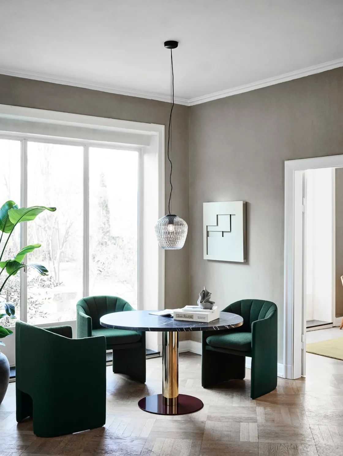 Blown er en nydelig pendel, og Samuel Wilkinsons første lampe designet for &Tradition. Glasset er munnblåst med et quiltet mønster og er et resultat av designerens utforsking på hvordan refleksjoner påvirker lyset i et mønstret glass. Lampen kan fint henge over spisebordet eller salongbordet, og den vil gi et generelt lys.