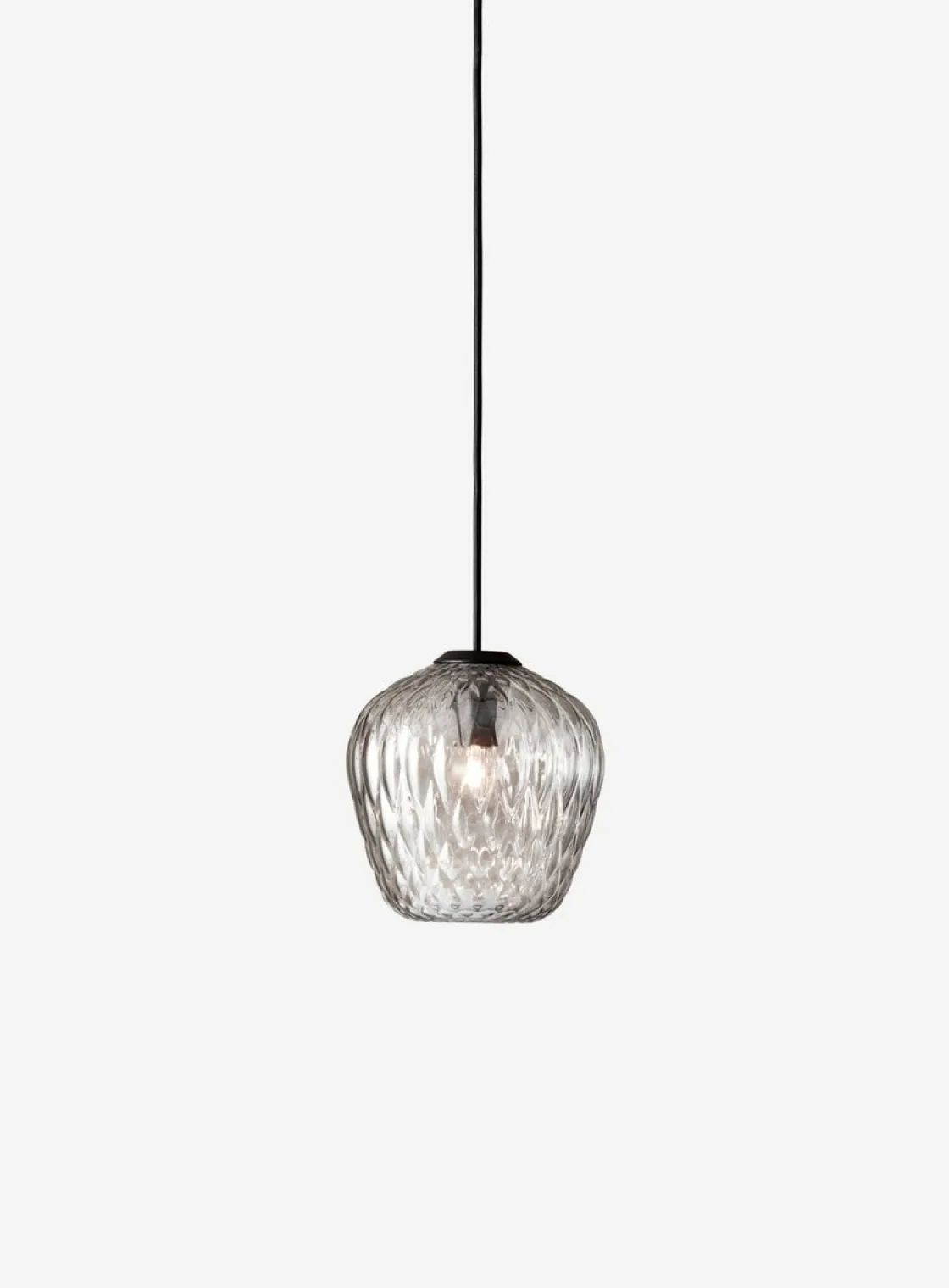 Blown er en nydelig pendel, og Samuel Wilkinsons første lampe designet for &Tradition. Nå endelig i en mindre utgave! Glasset er munnblåst med et quiltet mønster og er et resultat av designerens utforsking på hvordan refleksjoner påvirker lyset i et mønstret glass. Lampen kan fint henge over spisebordet eller kjøkkenøya, og den vil gi et generelt lys. Finnes i flere utførelser.