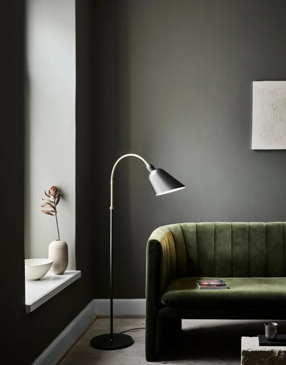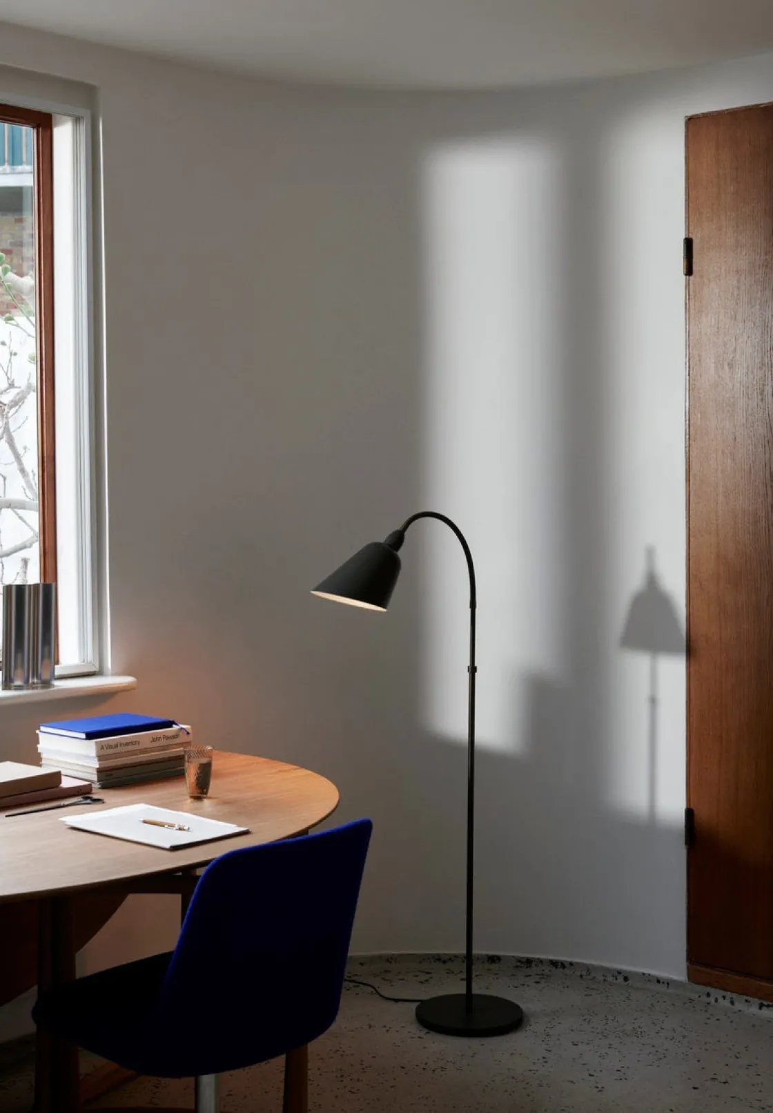 Bellevue gulvlampe ble designet av arkitekt og designer Arne Jacobsen så tidlig som i 1929, en tid da funksjonalisme og modernisme sto sentralt. Lampen har elegante linjer og enkle, organiske former samtidig som den er meget funksjonell. Armen er bevegelig så en kan styre lyset dit en behøver det. Kommer i flere utførelser og farger.