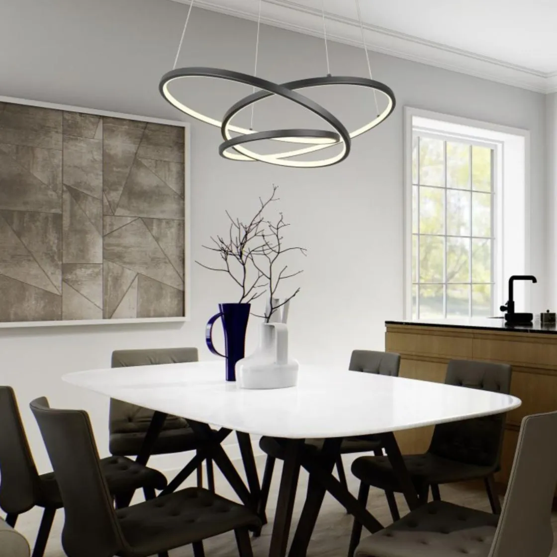 DARVIN pendellampe er et blikkfang med sin kunstnerisk buede form og elegante uttrykk. Den høykvalitets LED-stripen gir både estetisk effekt og energieffektiv belysning.