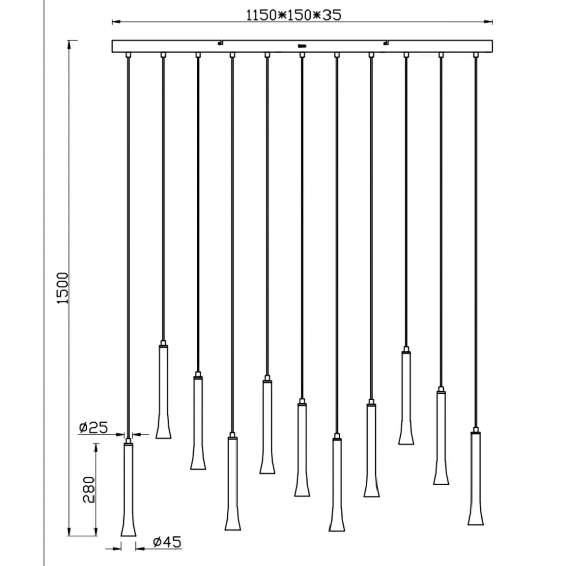 - Lyspære: 11 x 3W – Inkludert