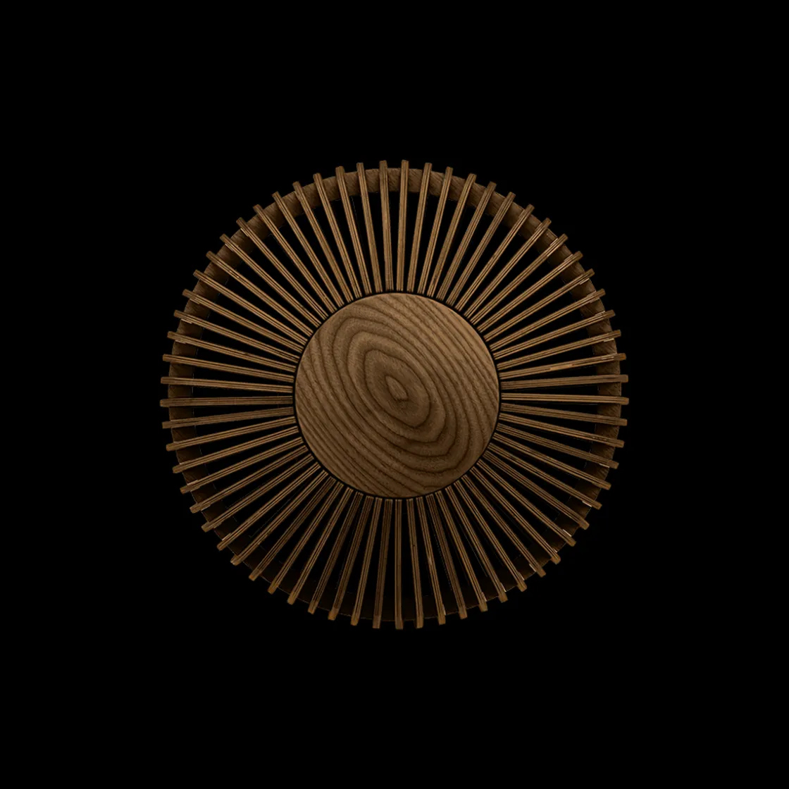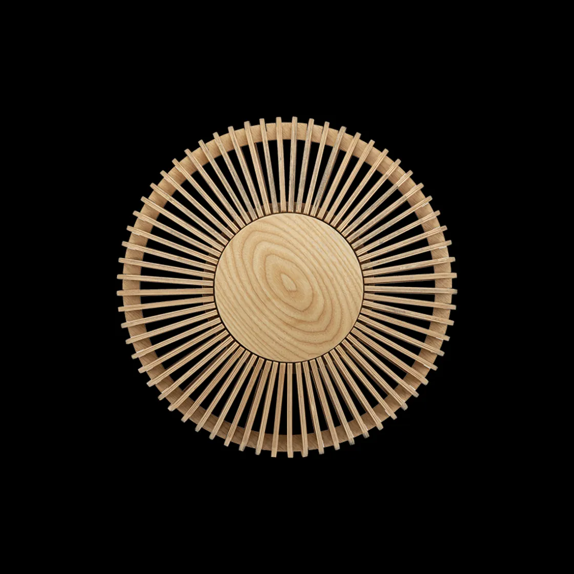 Clava Up Wood er en vegglampe laget av laserskåret trelameller, designet for å belyse hjemmet med lekne lysstråler på veggene i det omkringliggende rommet.