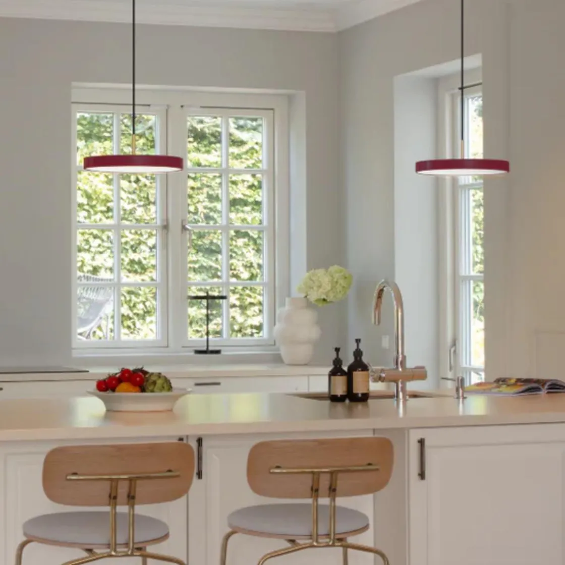 Asteria Plus tar den klassiske Asteria-pendelen til nye høyder med sin innebygde dimmer og mulighet for montering i lysskinner, noe som gjør den til en ideell belysningsløsning for kontorer, private spiserom eller kjøkkenområder.