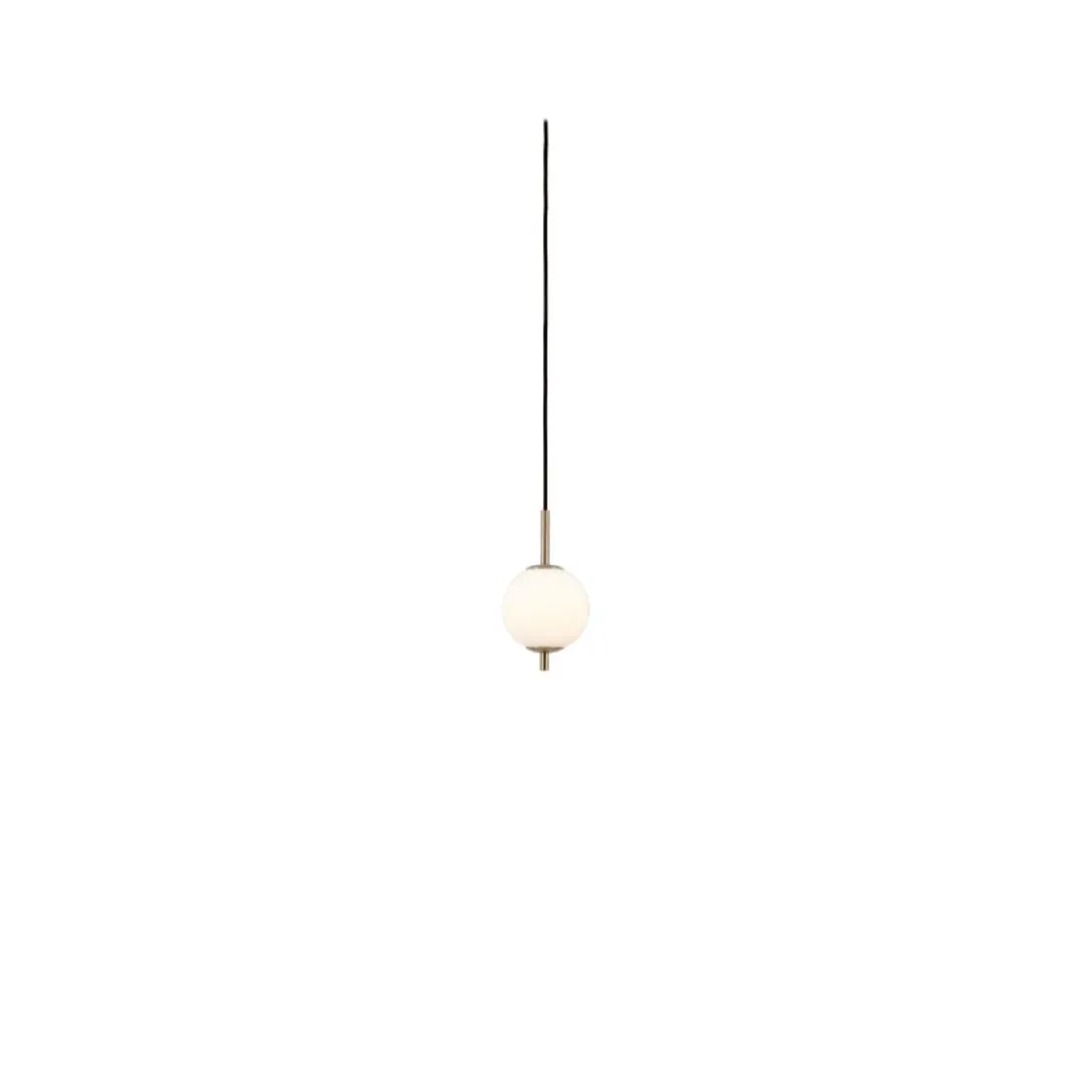 Med messingdetaljer og munnblåste opalglasskuler, utstråler Audrey en fortryllende varme som minner om lysende perler. Lampen kan dimmes med en ekstern dimmer, og de delikate kuplene sprer et behagelig lys som skaper en avslappende atmosfære.