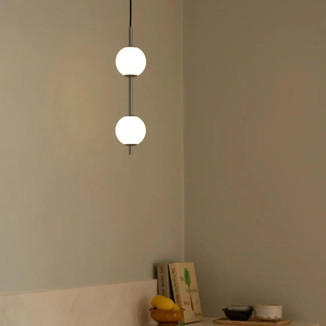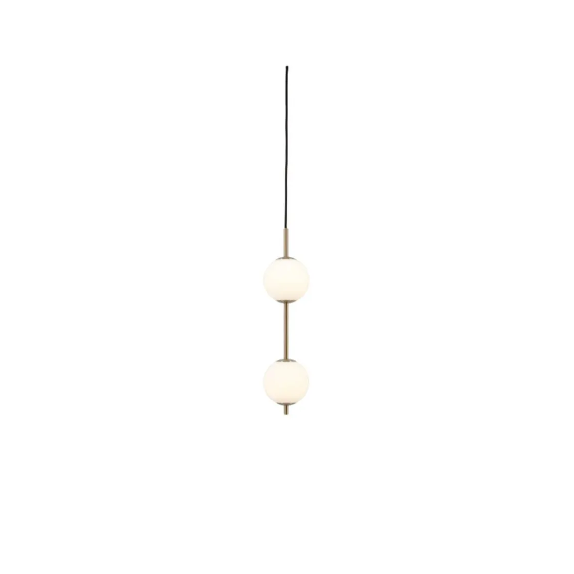 Med messingdetaljer og munnblåste opalglasskuler, utstråler Audrey en fortryllende varme som minner om lysende perler. Lampen kan dimmes med en ekstern dimmer, og de delikate kuplene sprer et behagelig lys som skaper en avslappende atmosfære.
