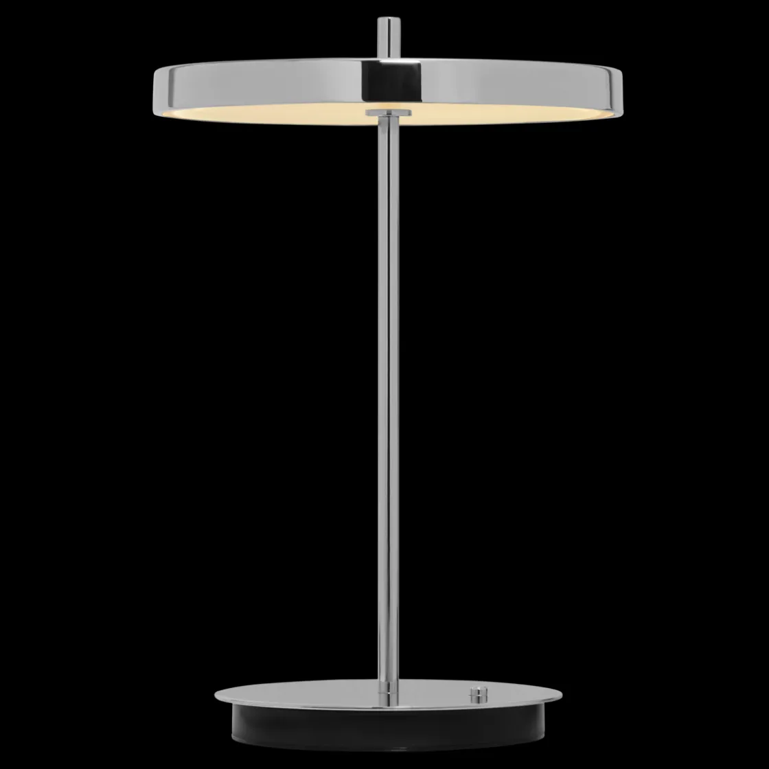 Asteria Move har fire lysintensitetsnivåer som kan justeres ved å trykke på knappen på lampebunnen. Batteriets levetid er opptil 168 timer, og den kan enkelt lades ved å plassere den på toppen av en hvilken som helst Qi-lading, som Unifier fra UMAGE-belysningstilbehørssamlingen eller med den medfølgende USB-kabelen.