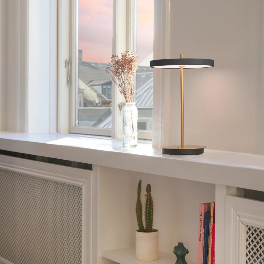 Asteria Move V2 er en bærbar bordlampe uten ledninger, noe som gir designen ekstra fokus samt gjør det enkelt å flytte den rundt slik at lyset er der det trengs.
