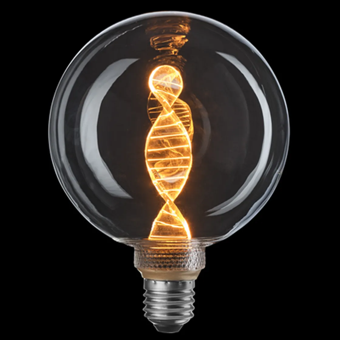 DNA er en nydelig lyspære som er ment for dekorativt lys. Lyspæren kan dimmes med vanlig bryter i 3 nivåer. Dobbel klikk med bryteren for at lysnivået skal endret.
