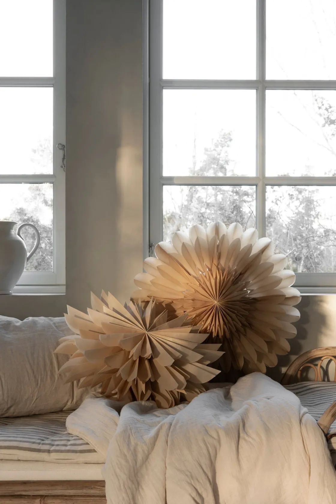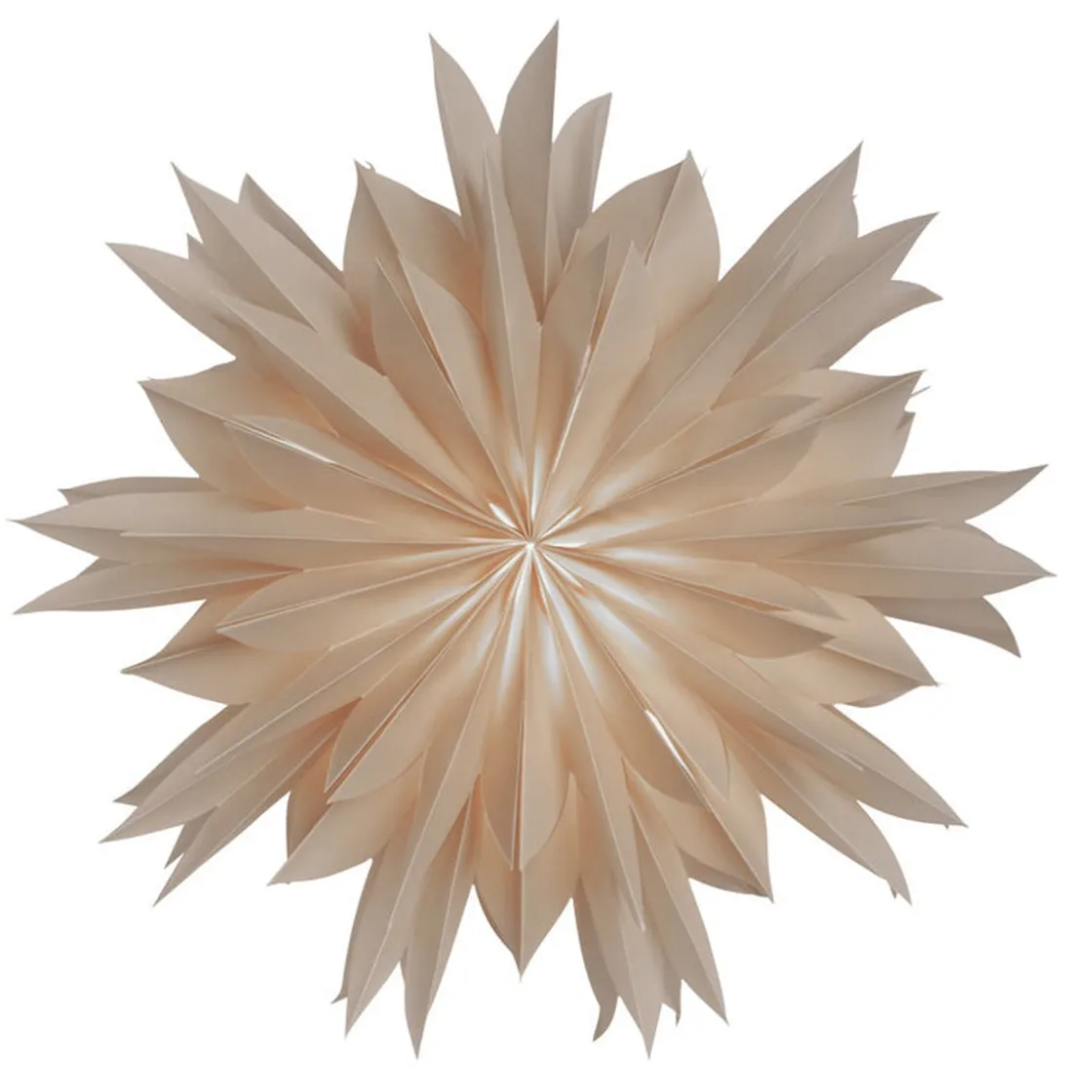 Athena julestjerne er årets vakreste nyhet fra den populære svenske leverandøren Watt & Veke . Stjernen er laget for hånd i et semi-transparant beige papir som gir et fantastisk vakkert lys. Athena betyr håntverkets gudinne, noe som passerer til denne vakre julestjernen.