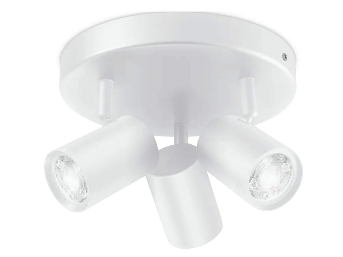 Tre justerbare spoter på en stilig, rund takbase gir deg mange morsomme alternativer for å fylle rommet med vakre farger og lys. Velg en lysscene for en bestemt aktivitet med Build-on Spots-lysarmaturen, eller la appen gjøre jobben med automatiserte rutiner.