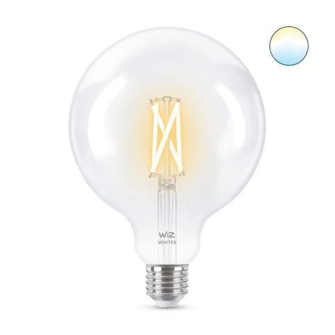 Bring menneskesentrert belysning inn i livet ditt med denne smarte WiZ LED G125 vintage kuppelformede lyspæren. Bruk forskjellige nyanser fra varmt til kjølig hvitt lys for å hjelpe deg med å fokusere eller slappe av. Du kan lage en tidsplan som skrur lysene av og på i henhold til dine daglige eller ukentlige rutiner, styre det med smarttelefonen eller stemmen din og ha fjerntilgang til lysene dine selv når du ikke er hjemme. WiZ-lys kobler til ditt eksisterende Wi-Fi og det kreves ingen annen maskinvare.